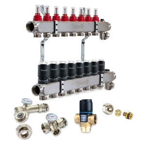 Колектор для теплої підлоги TERVIX на 8 контурів з клапаном TMV, змішувальним вузлом та приводами 522108