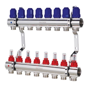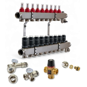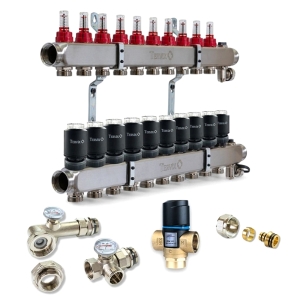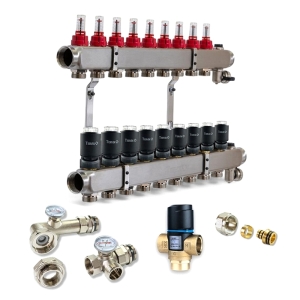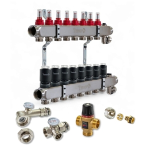 Колектор для теплої підлоги TERVIX на 9 контурів з клапаном TMV, змішувальним вузлом та приводами 522109