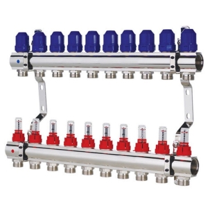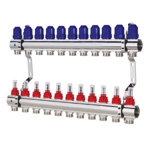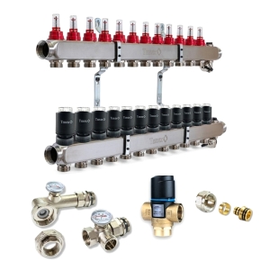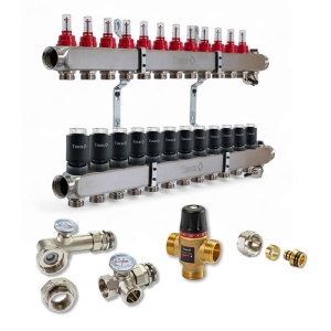 Колектор для теплої підлоги TERVIX на 11 контурів з клапаном TMV, змішувальним вузлом та приводами 522111