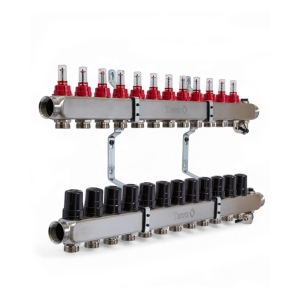 Колектор TERVIX Pro Line на 11 контурів, з витратомірами, краном Маєвського та зливним краном 501211