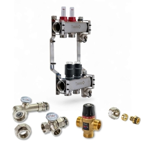 Колектор для теплої підлоги TERVIX на 2 контури з клапаном TMV, змішувальним вузлом та приводами 522102