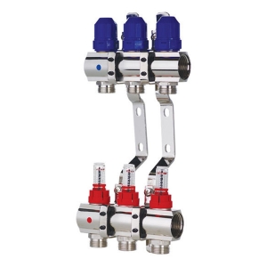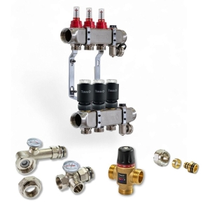 Колектор для теплої підлоги TERVIX на 3 контури з клапаном TMV, змішувальним вузлом та приводами 522103