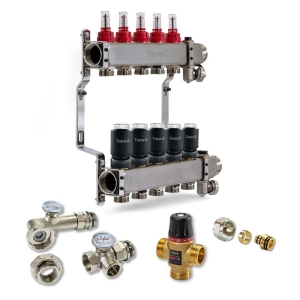 Колектор для теплої підлоги TERVIX на 5 контурів з клапаном TMV, змішувальним вузлом та приводами 522105