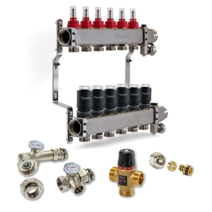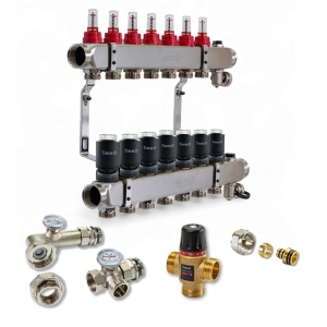 Колектор для теплої підлоги TERVIX на 7 контурів з клапаном TMV, змішувальним вузлом та приводами 522107