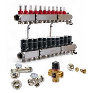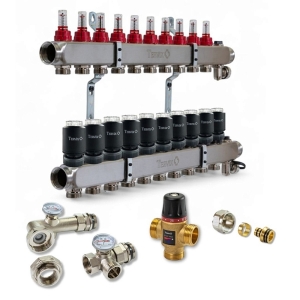 Колектор для теплої підлоги TERVIX на 10 контурів з клапаном TMV, змішувальним вузлом та приводами 522110