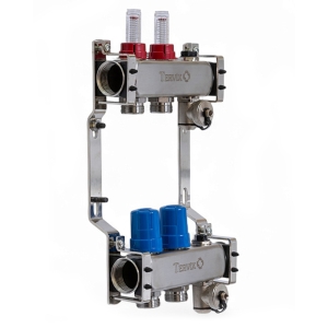 Колектор TERVIX Pro Line на 2 контури, з витратомірами, краном Маєвського та зливним краном 501202