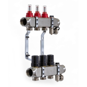 Колектор TERVIX Pro Line на 3 контури, з витратомірами, ккраном Маєвського та зливним краном 501203
