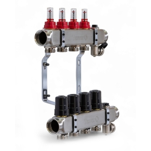 Колектор TERVIX Pro Line на 4 контури, з витратомірами, краном Маєвського та зливним краном 501204