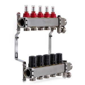 Колектор TERVIX Pro Line на 5 контурів, з витратомірами, краном Маєвського та зливним краном 501205