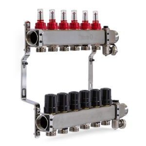 Колектор TERVIX Pro Line на 6 контурів, з витратомірами, краном Маєвського та зливним краном 501206