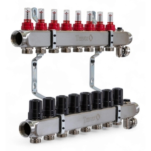 Колектор TERVIX Pro Line на 8 контурів, з витратомірами, краном Маєвського та зливним краном 501208