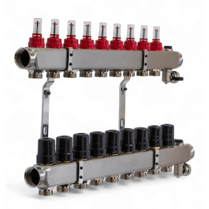 Колектор TERVIX Pro Line на 10 контурів, з витратомірами, краном Маєвського та зливним краном 501210