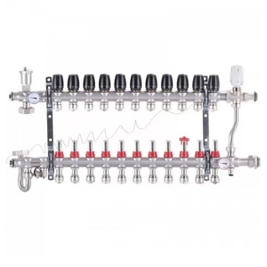 Колектор для теплої підлоги TERVIX на 12 контурів з клапаном TMV, змішувальним вузлом та приводами 522112