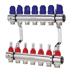 Колектор TERVIX Pro Line на 7 контурів, з витратомірами, краном Маєвського та зливним краном 501207