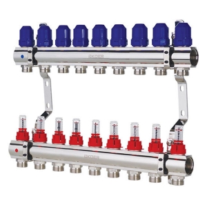 Колектор TERVIX Pro Line на 9 контурів, з витратомірами, краном Маєвського та зливним краном 501209
