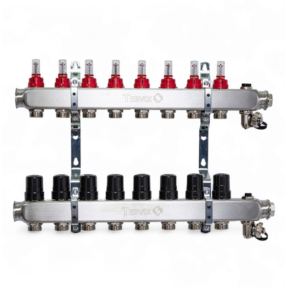 Колектор на 8 контурів з витратомірами, краном Маєвського та зливним краном із нержавіючої сталі Tervix Pro Line