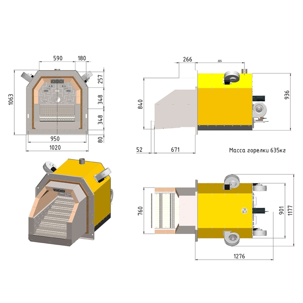 - Легкознімний колосниковий блок. Дозволяє швидко і легко зробити профілактичні роботи, не торкаючись розпечених частин котла.