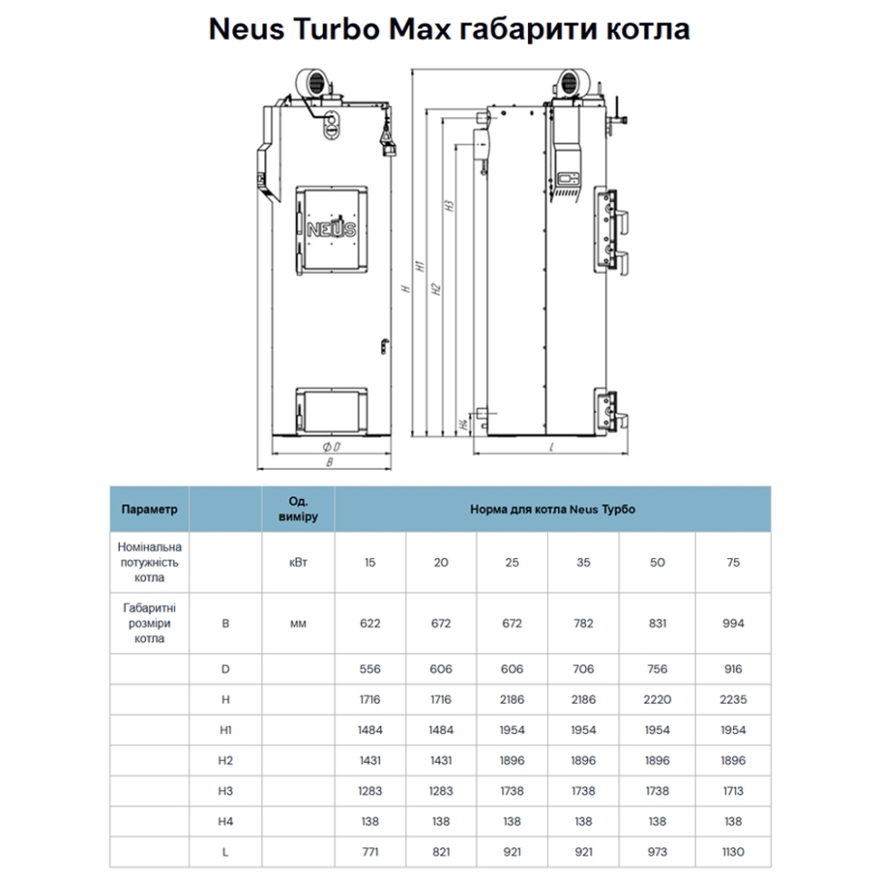 Діаметр патрубків прямої і зворотної мережної води (Ду)